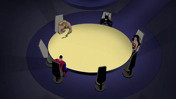 From his seat, the batman studied the pair as they approached the large, round conference table.